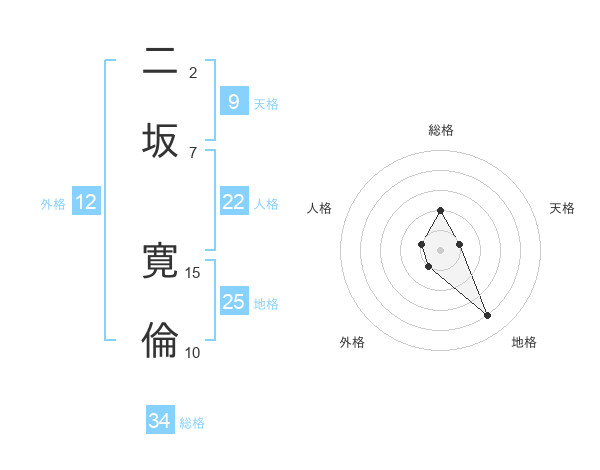 二坂 寛倫さんを姓名の画数から五運を鑑定