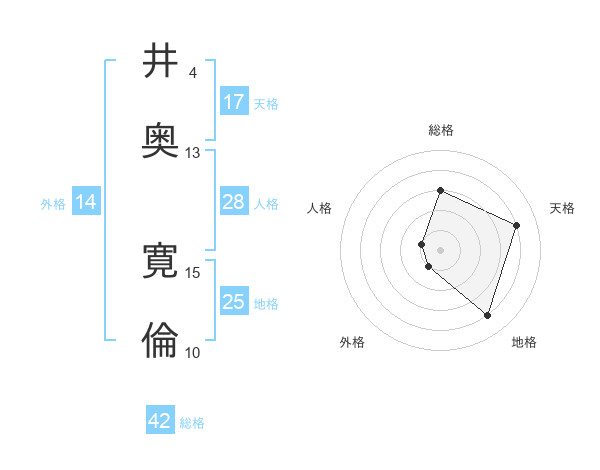 井奥 寛倫さんの天格は17画の4点!