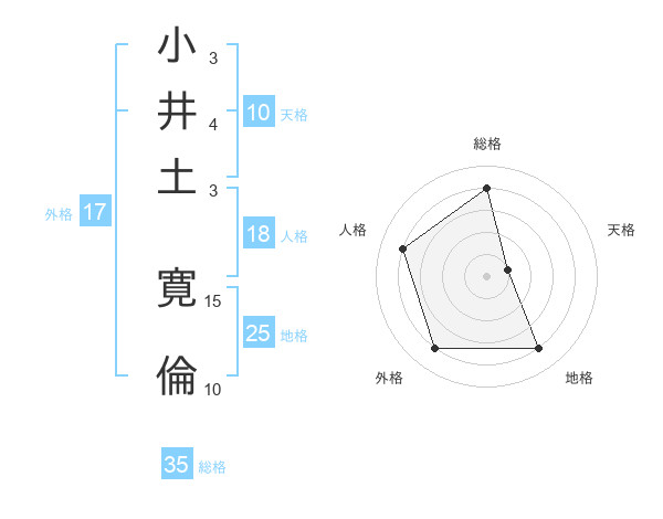 小井土 寛倫さんを姓名の画数から五運を鑑定