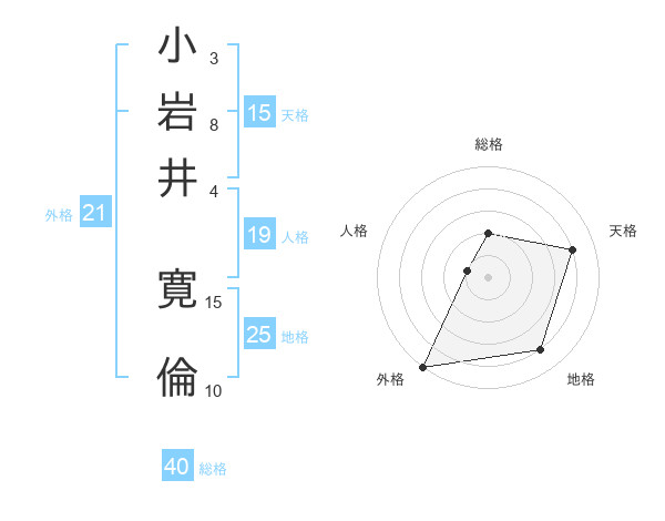 小岩井 寛倫さんの天格は15画の4点!