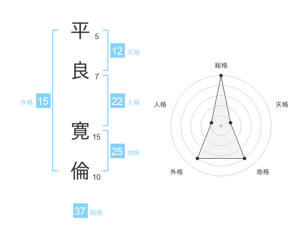 平良 寛倫さんの総格は37画の5点!