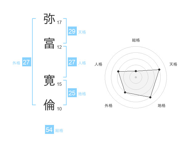 弥富 寛倫さんの総格は54画の1点!