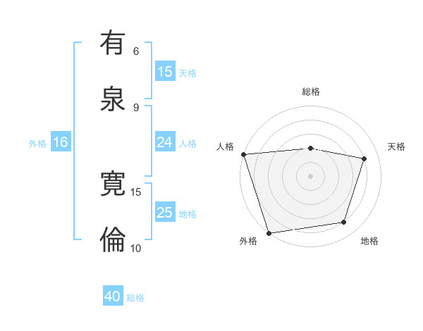 有泉 寛倫さんを姓名の画数から五運を鑑定