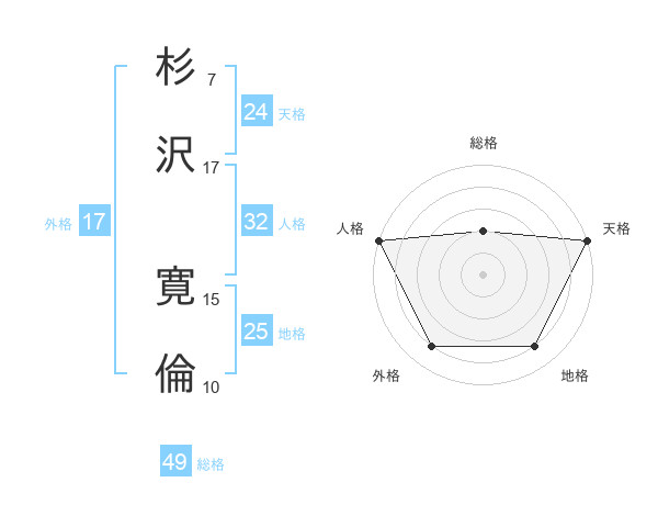 杉沢 寛倫さんの天格は24画の5点!