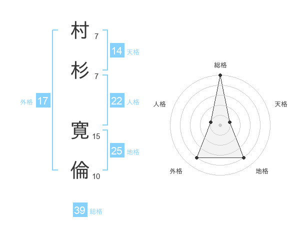 村杉 寛倫さんの総格は39画の5点!