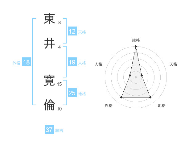 東井 寛倫さんの総格は37画の5点!