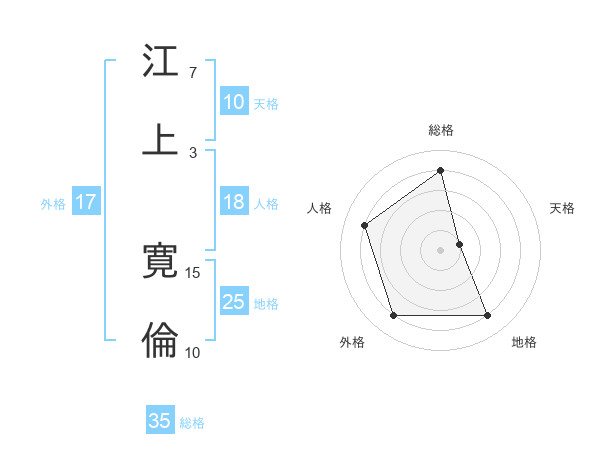 江上 寛倫さんを姓名の画数から五運を鑑定