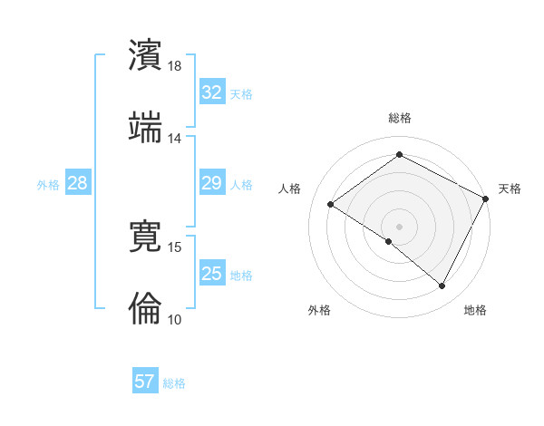 濱端 寛倫さんの総格は57画の4点!