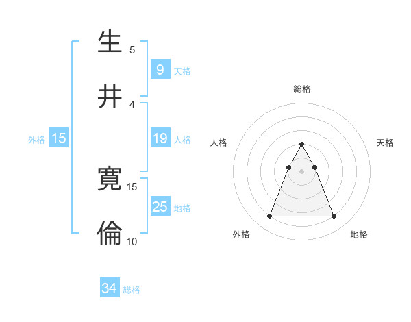 生井 寛倫さんを姓名の画数から五運を鑑定