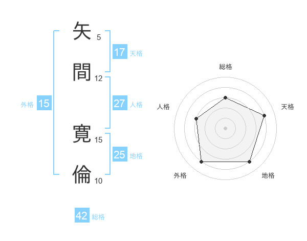 矢間 寛倫さんを姓名の画数から五運を鑑定