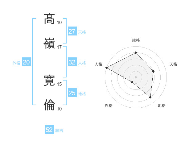 髙嶺 寛倫さんを姓名の画数から五運を鑑定