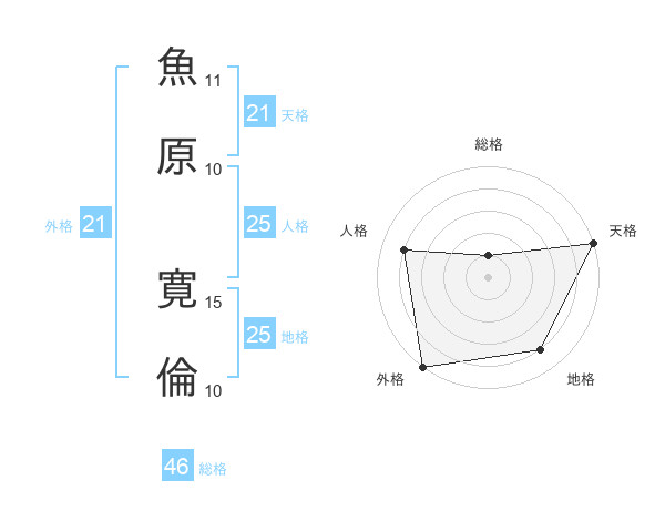 魚原 寛倫さんの天格は21画の5点!