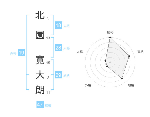 北園 寛大朗さんを姓名の画数から五運を鑑定