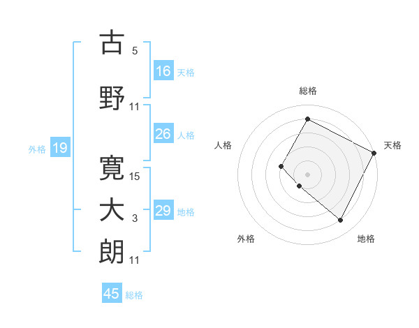 古野 寛大朗さんの総格は45画の4点!