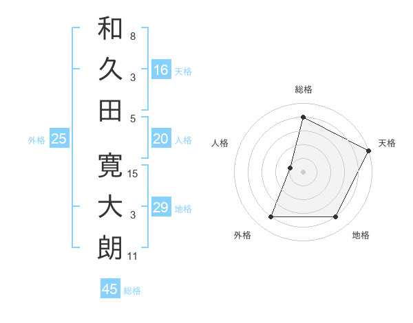 和久田 寛大朗さんを姓名の画数から五運を鑑定