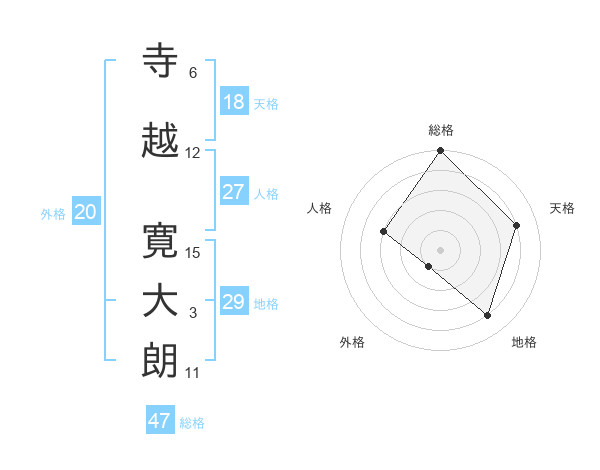 寺越 寛大朗さんを姓名の画数から五運を鑑定