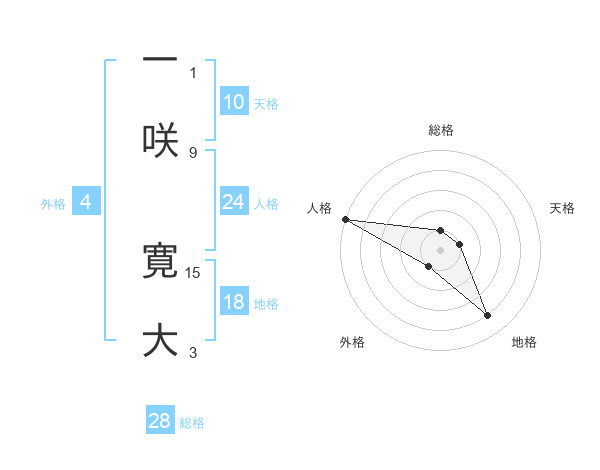 一咲 寛大さんの総格は28画の1点!
