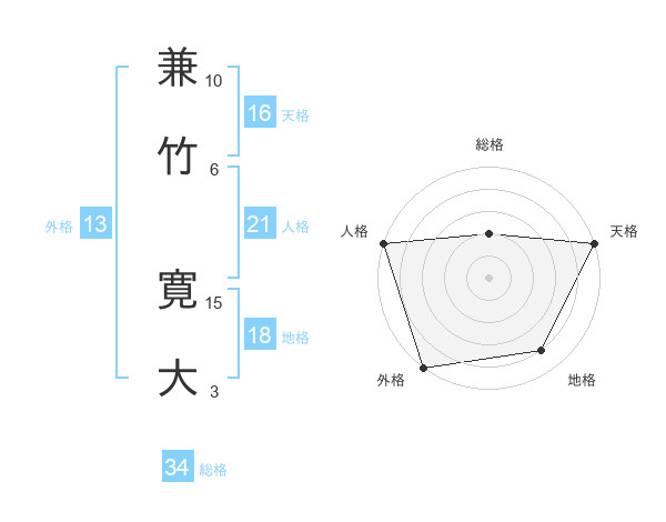 兼竹 寛大さんを姓名の画数から五運を鑑定