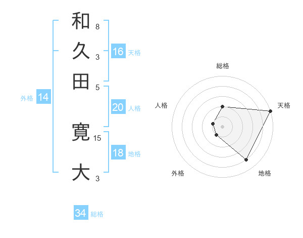 和久田 寛大さんを姓名の画数から五運を鑑定
