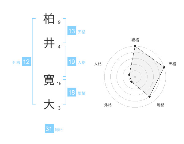 柏井 寛大さんの総格は31画の5点!