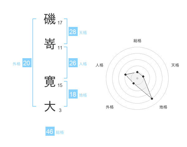 磯嵜 寛大さんの総格は46画の1点!