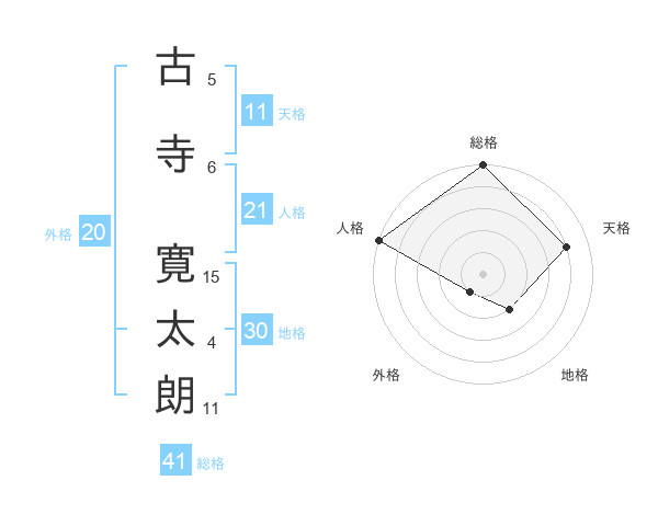 古寺 寛太朗さんの総格は41画の5点!