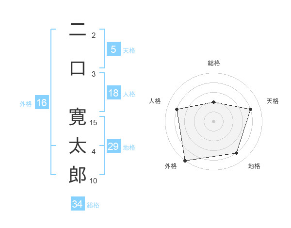 二口 寛太郎さんの外格は16画の5点!