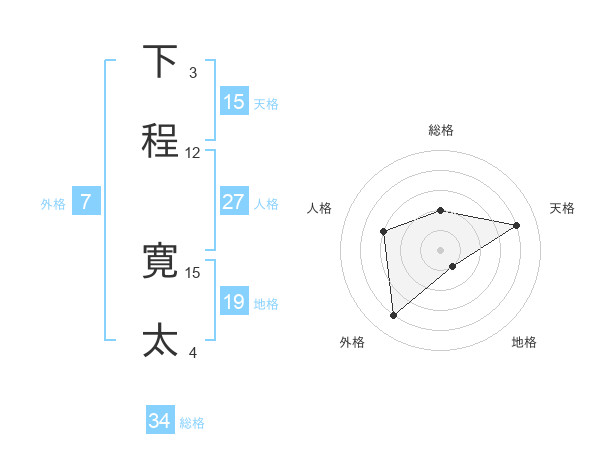 下程 寛太さんの天格は15画の4点!