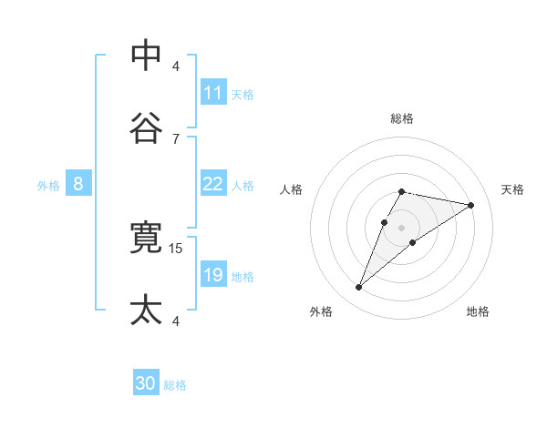中谷 寛太さんを姓名の画数から五運を鑑定