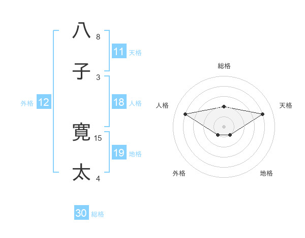 八子 寛太さんの総格は30画の2点!
