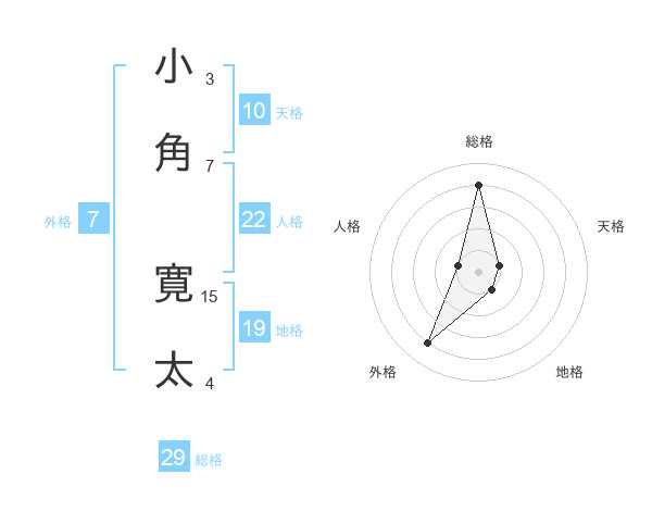 小角 寛太さんの総格は29画の4点!