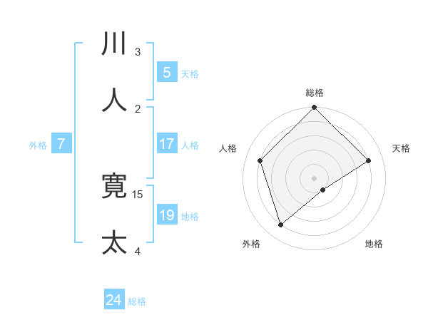 川人 寛太さんの総格は24画の5点!