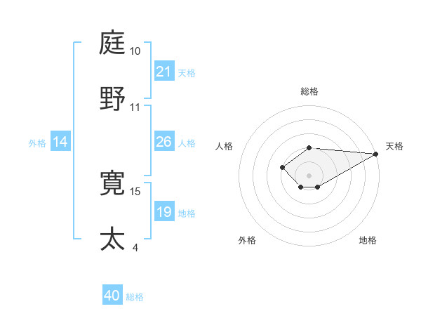 庭野 寛太さんの天格は21画の5点!