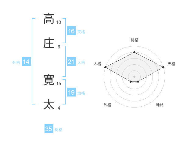 高庄 寛太さんを姓名の画数から五運を鑑定