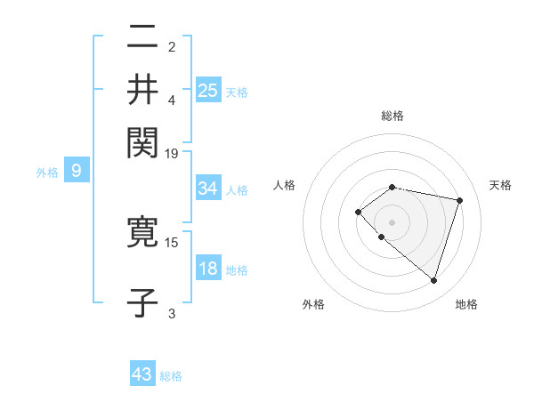 二井関 寛子さんを姓名の画数から五運を鑑定