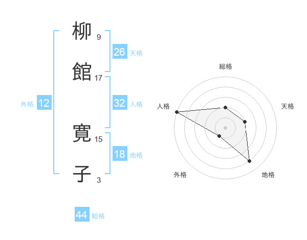 柳館 寛子さんの総格は44画の2点!