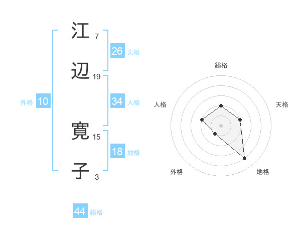 江辺 寛子さんの総格は44画の2点!