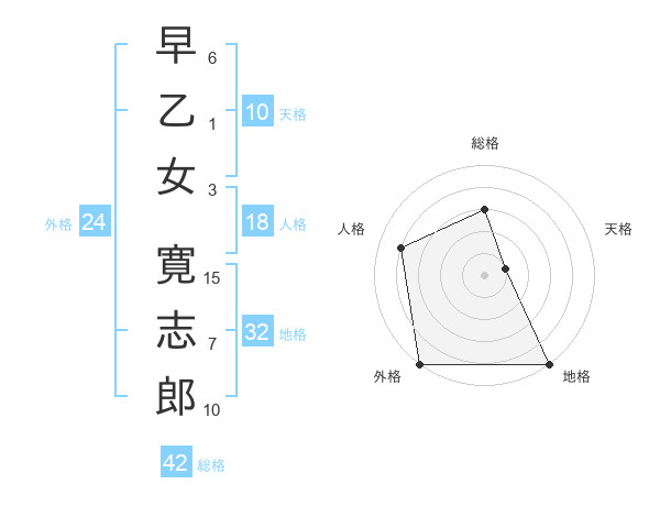 早乙女 寛志郎さんを姓名の画数から五運を鑑定