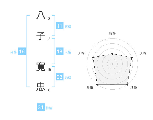 八子 寛忠さんの総格は34画の2点!