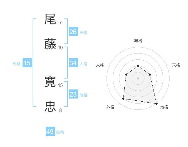 尾藤 寛忠さんを姓名の画数から五運を鑑定