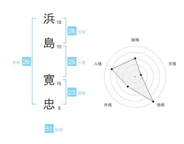 浜島 寛忠さんを姓名の画数から五運を鑑定