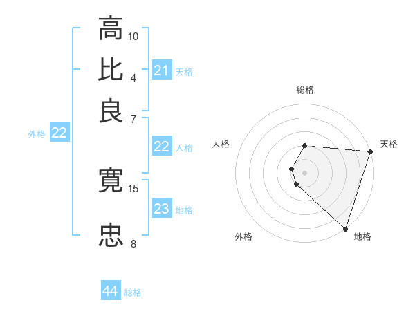 高比良 寛忠さんの総格は44画の2点!