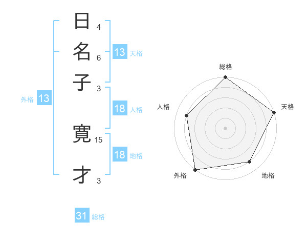 日名子 寛才さんを姓名の画数から五運を鑑定