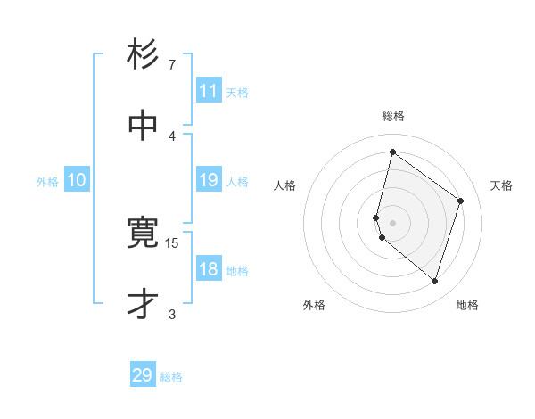 杉中 寛才さんを姓名の画数から五運を鑑定
