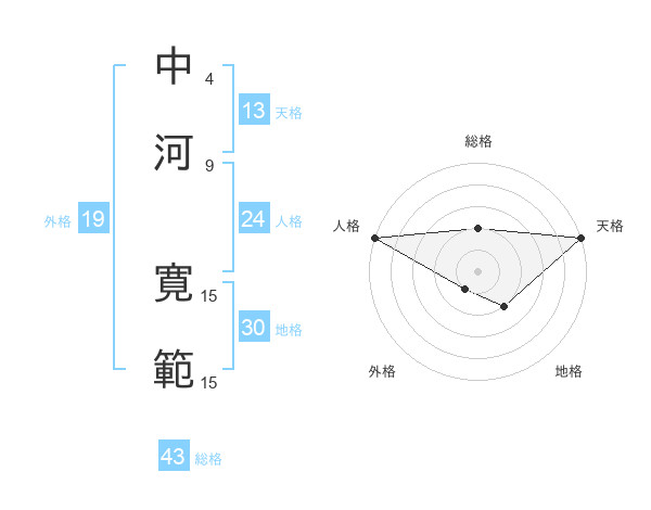 中河 寛範さんの総格は43画の2点!