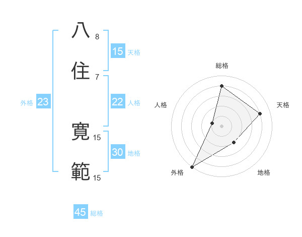 八住 寛範さんの総格は45画の4点!