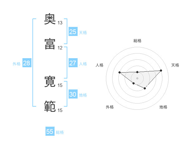 奥富 寛範さんの総格は55画の1点!