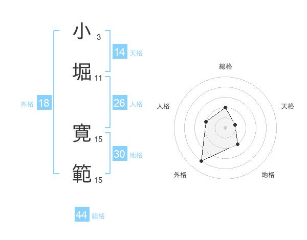 小堀 寛範さんを姓名の画数から五運を鑑定
