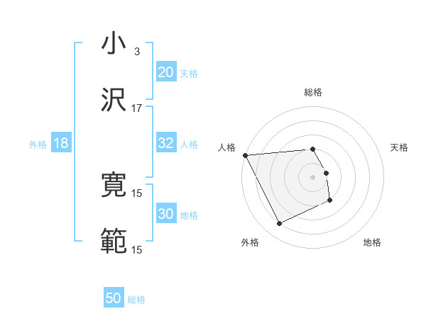 小沢 寛範さんを姓名の画数から五運を鑑定