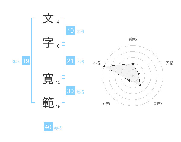 文字 寛範さんの総格は40画の2点!